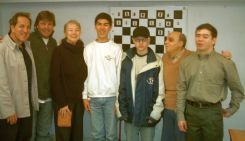 En la foto: Sandra Villegas con los ajedrecistas ciegos
