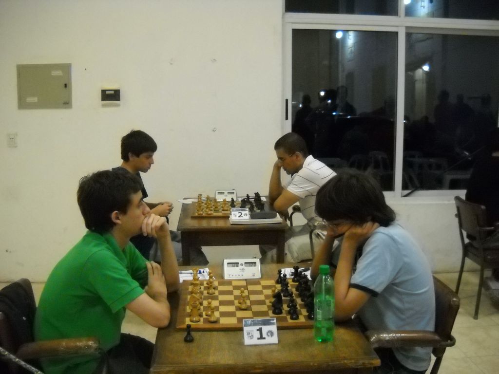 Roberto Elías y Leandro Krysa, que juega con los ojos vendados. Observa