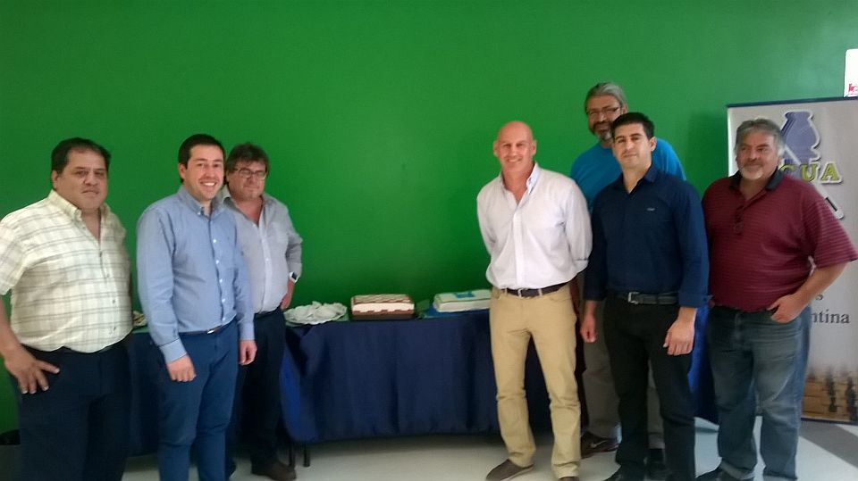 Ríos, presidenta de ACUA; a Daniel Moreli, vice de ACUA y a Mario